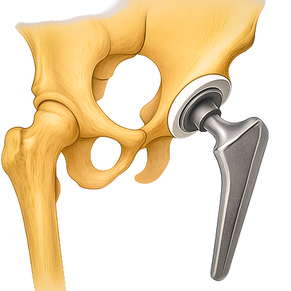 Hip replacement resurfaces the ball‑and‑socket with smooth, durable implants to remove bone‑on‑bone friction. The goal is pain relief and a strong, stable hip that moves freely.